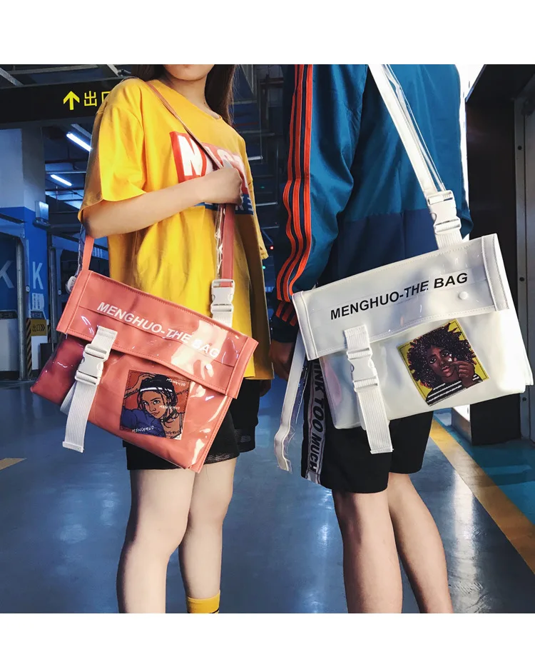 cheap INS Harajuku Printing Hip Hop Messenger Crossbody Bag Women Men Street Graffiti Shoulder School Bags Girls Brands Chic Bolsa PU RECOMMENDED TODAY Cheap BUY Limited