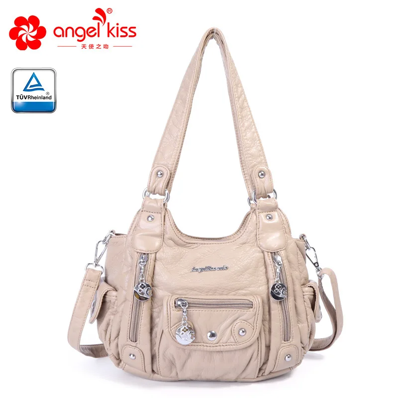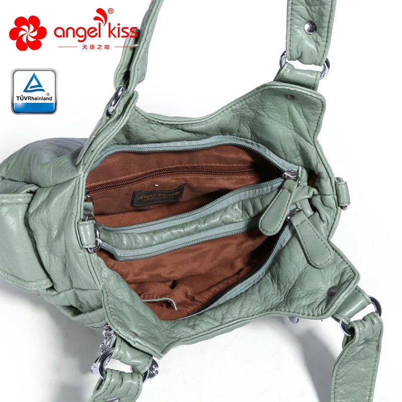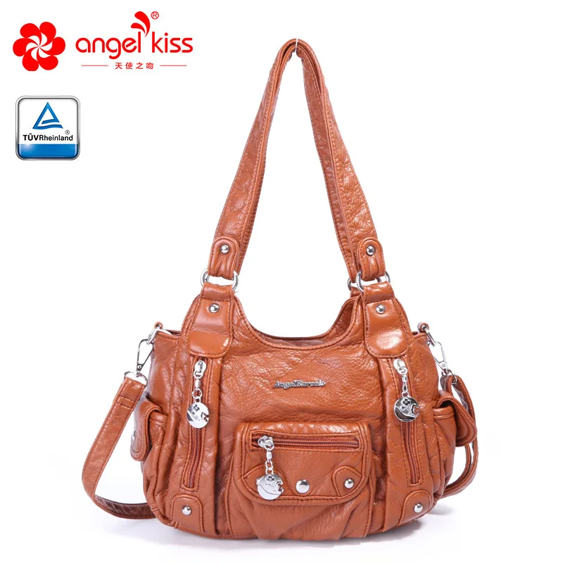 SPECIAL OFFERS Cheap SPECIAL PRICE Angelkiss Fashion 2 Top Zipper Soft Washed PU Leather Handbag Satchels Women Messenger Bags Purses With Free Gift Limited